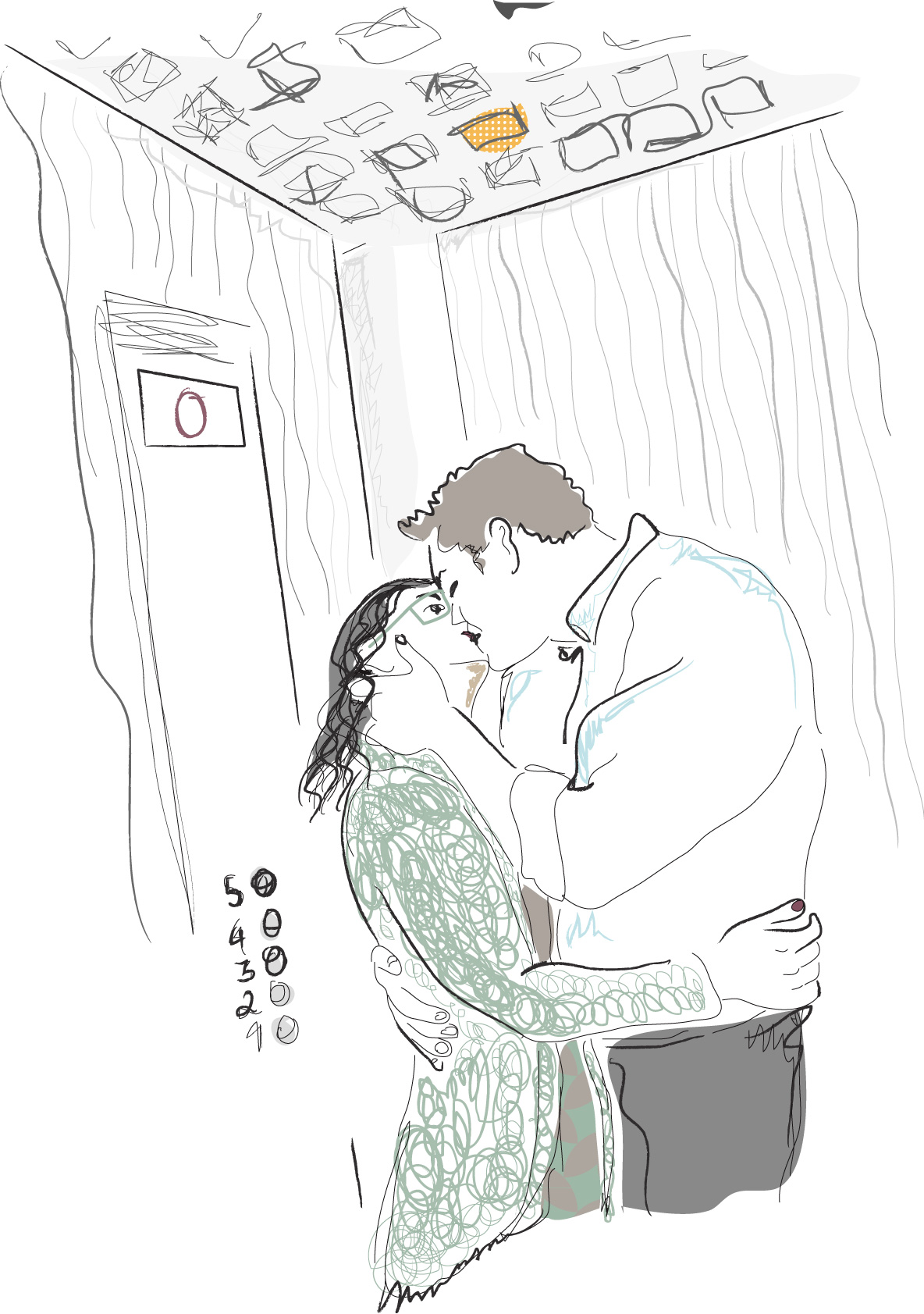 Ganz unromantisch mit zehn Leuten im Glaslift eines Museums. Wo auch sonst?
