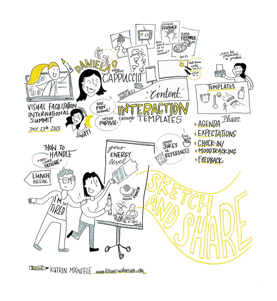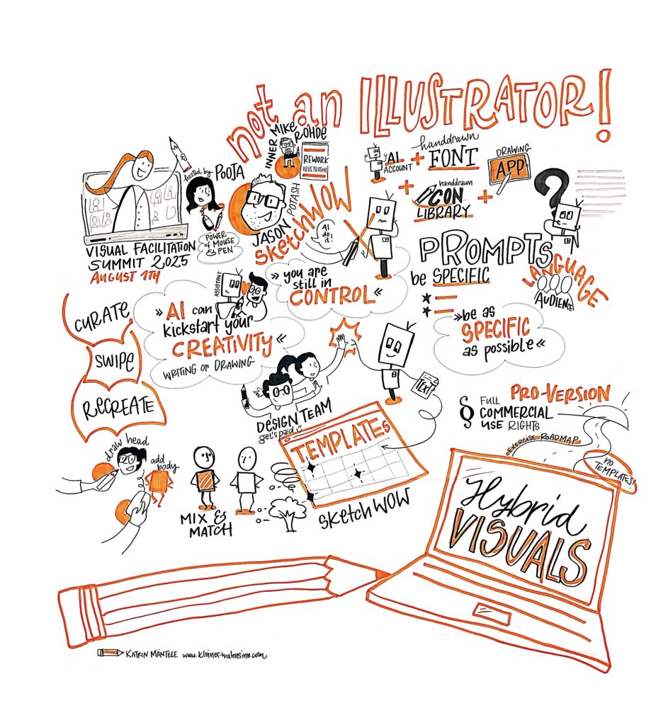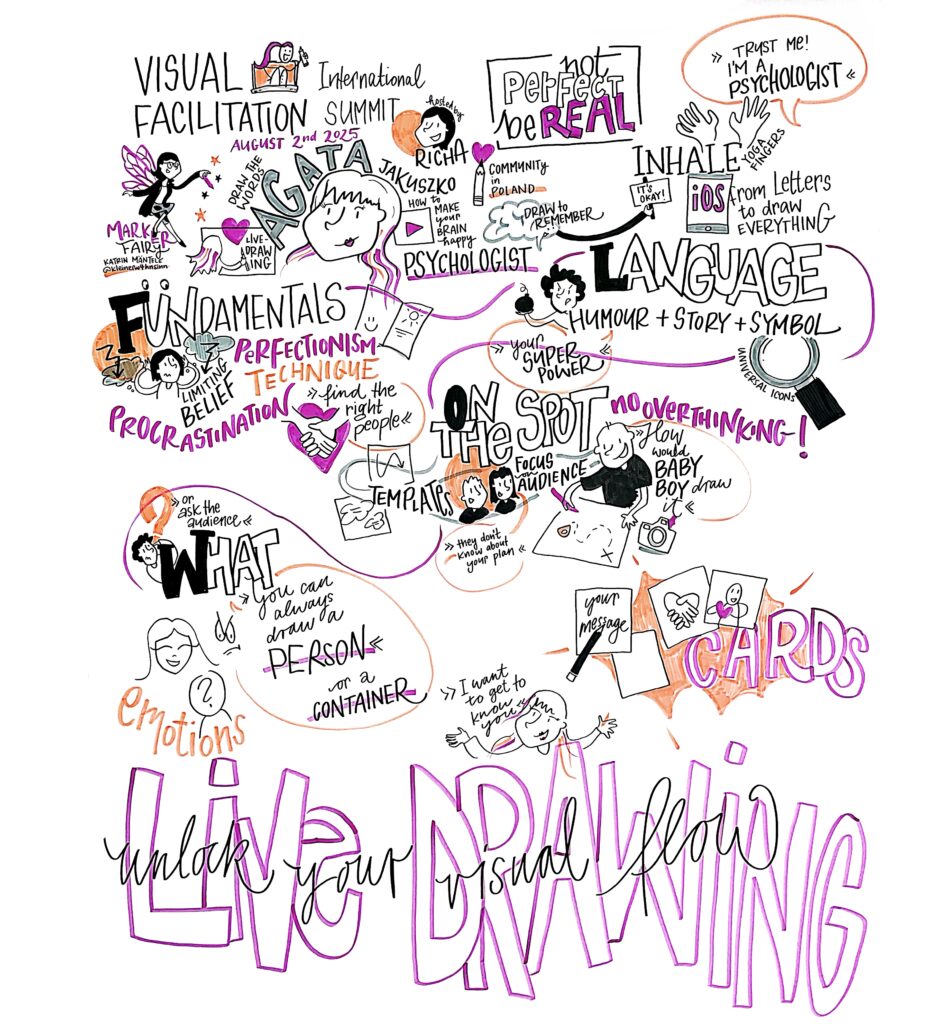 Beim Visual Thinking Global Summit 2025 hielt ich nicht nur selbst vor hunderten Teilnehmenden aus aller Welt einen Vortrag zum Thema Perfektionismus überwinden, sondern zeichnete auch die Kernbotschaften von Mehreren der eineinhalbstündigen Sessions in Form von Graphic Recordings mit.